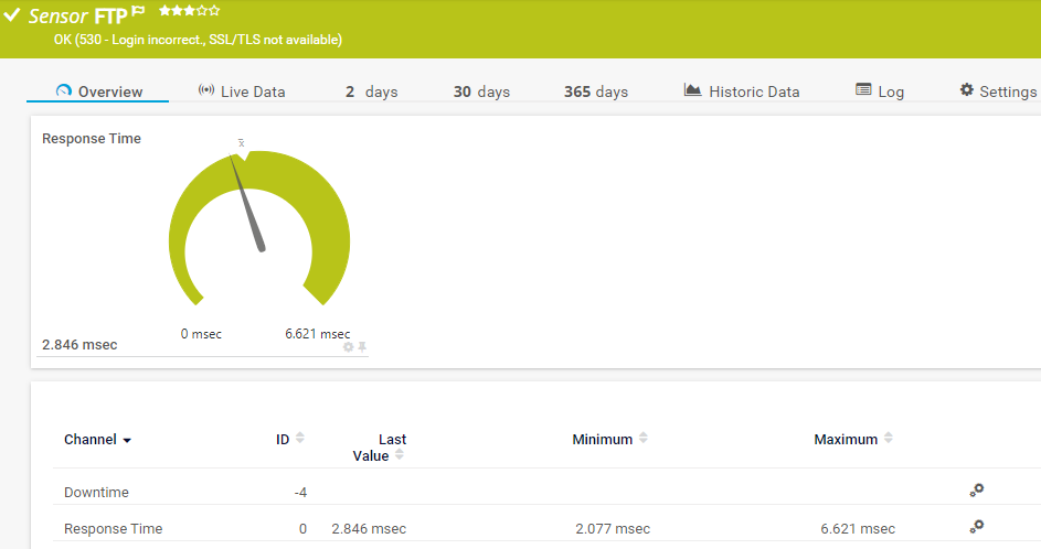 i_round_blueIf the sensor cannot log on to the FTP server with this password, the sensor message shows that the credentials are incorrect but the sensor remains in the Up status.