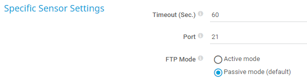 Define the FTP connection mode that the sensor uses for the connection to the FTP server: