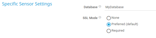 The SSL mode options that you can choose are the same as the values of the MySQL sslmode parameter. PRTG sends it with the sensor requests.