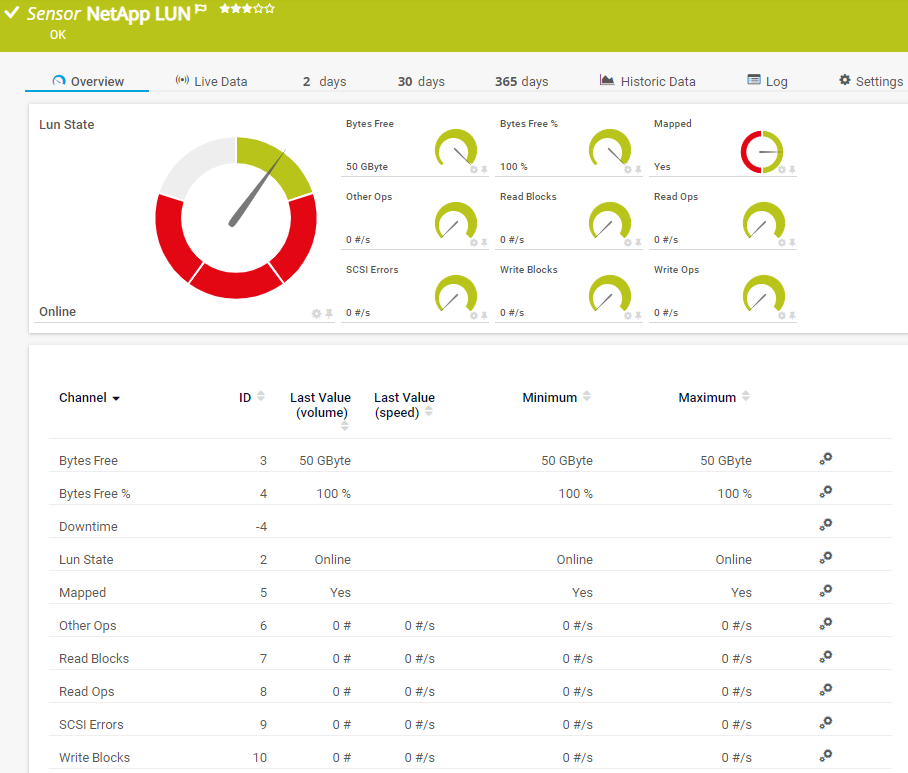 The NetApp LUN sensor monitors the logical unit number (LUN) of a NetApp cDOT or ONTAP storage system accessing the application programming interface (API) via the Simple Object Access Protocol (SOAP).