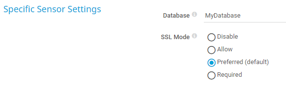 The SSL mode options that you can choose are the same as the values of the PostgreSQL sslmode parameter. PRTG sends it with the sensor requests.