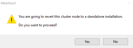 Click Revert to Standalone to revert this cluster node to a standalone installation.