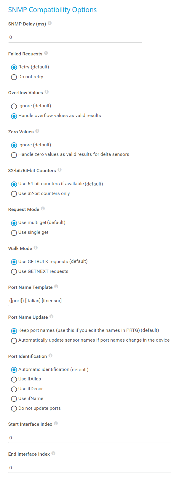 Select the field that PRTG uses for SNMP interface identification:
