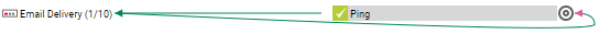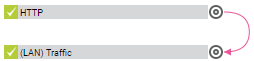 Pink lines show a dependency that you set manually (Select a sensor setting). The source of the dependency points to the dependant with a pink arrow at the line's end.