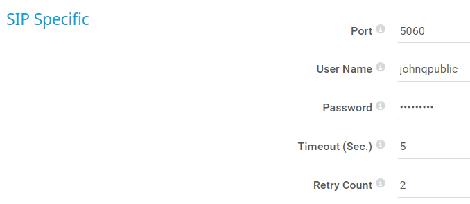 If the connection to the SIP server fails, the sensor tries to connect again. Enter the maximum number of retries. After the sensor reaches the maximum count, it shows the Down status. Enter an integer.