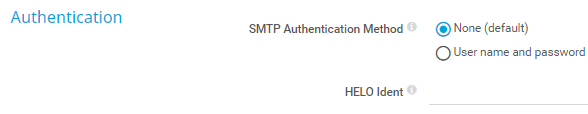 • User name and password: Authenticate against the SMTP server via user name and password.