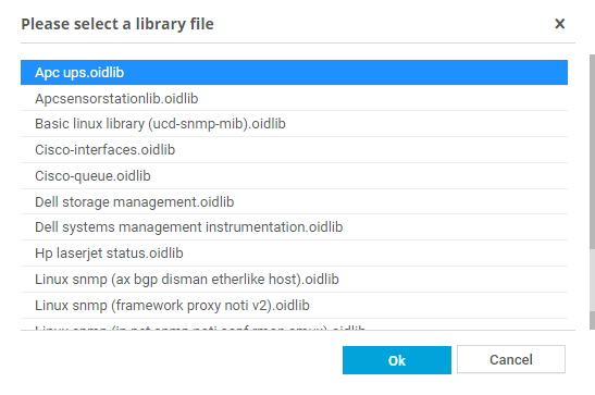 The library file names in the list indicate their purpose. Select a library file that is suitable for the target device (for example, choose an MIB file that you imported) and confirm via Ok.