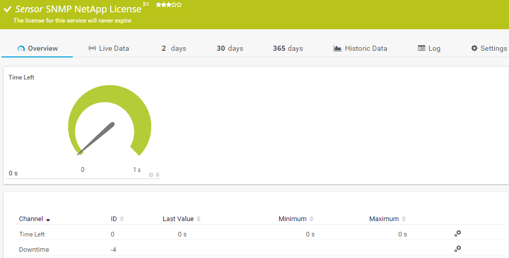 The SNMP NetApp License sensor monitors the licenses for the services of a NetApp storage system via the Simple Network Management Protocol (SNMP).