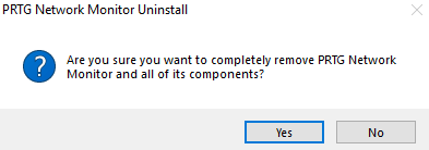 After the system restart, the software is removed, but there is still some custom data in the PRTG program directory. If you have uninstalled an entire PRTG installation or a remote probe installation, your monitoring data is still stored on the system. To completely remove all PRTG data, delete the PRTG Network Monitor folder as well as the Paessler\PRTG Network Monitor folder in the PRTG data directory.
