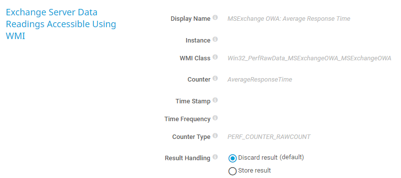 The WMI Exchange Server sensor monitors a Microsoft Exchange Server as of version 2016 via Windows Management Instrumentation (WMI).
