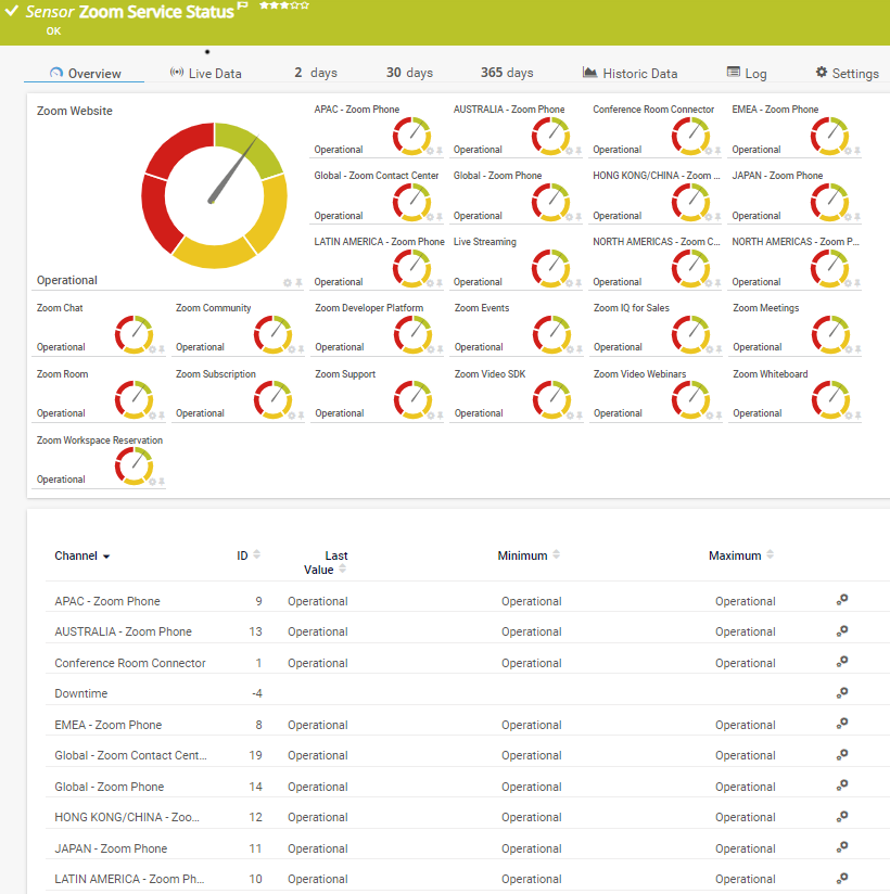 .. PRTG Manual: Zoom Service Status Sensor